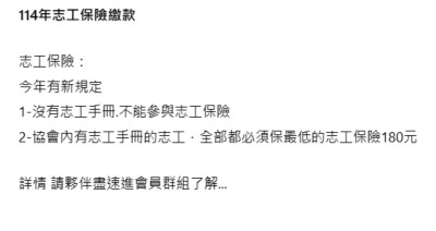 114年志工保險繳款