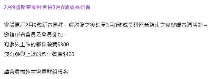 2月9號新春團拜合併3月8號成長研習